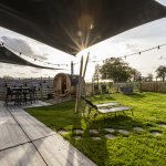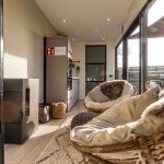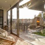 Zodra je de tiny house van de Hoeveschuur binnenstapt gaat de aandacht meteen naar de tuin, waar een prachtig uitzicht op een uitgestrekte weide jullie weet te bekoren. Het tafereel is bijna schilderachtig: paarden van groot tot klein dartellen vrij rond, bomen en struikgewas die het seizoen van het jaar verklappen, en ga zo maar door. Binnen zet de gezellige sfeer zich voort in de kleine gezellige ruimte met praktische inrichting. Het resultaat is een warme sfeer die typisch is voor Limburg: je voelt je er meteen thuis. Naast het adembenemende uitzicht zijn er nog de favoriete voorzieningen, de sauna en de jacuzzi. Beide voorzieningen bevinden zich in het tuintje en bieden alle troeven van de natuur en het uitzicht op de paardenweide. Ze kunnen volop gebruikt worden tijdens het hele verblijf.